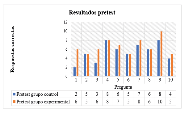 La siguiente figura presenta los resultados del pretest para los grupos control y experimental.